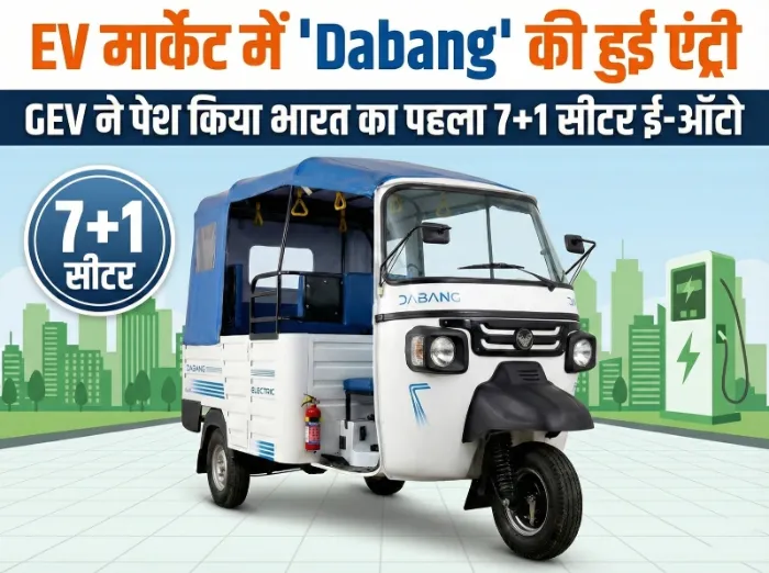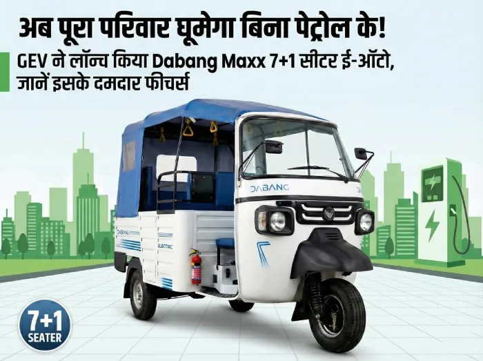 अब पूरा परिवार घूमेगा बिना पेट्रोल के! GEV ने लॉन्च किया Dabang Maxx 7+1 सीटर ई-ऑटो, जानें इसके दमदार फीचर्स